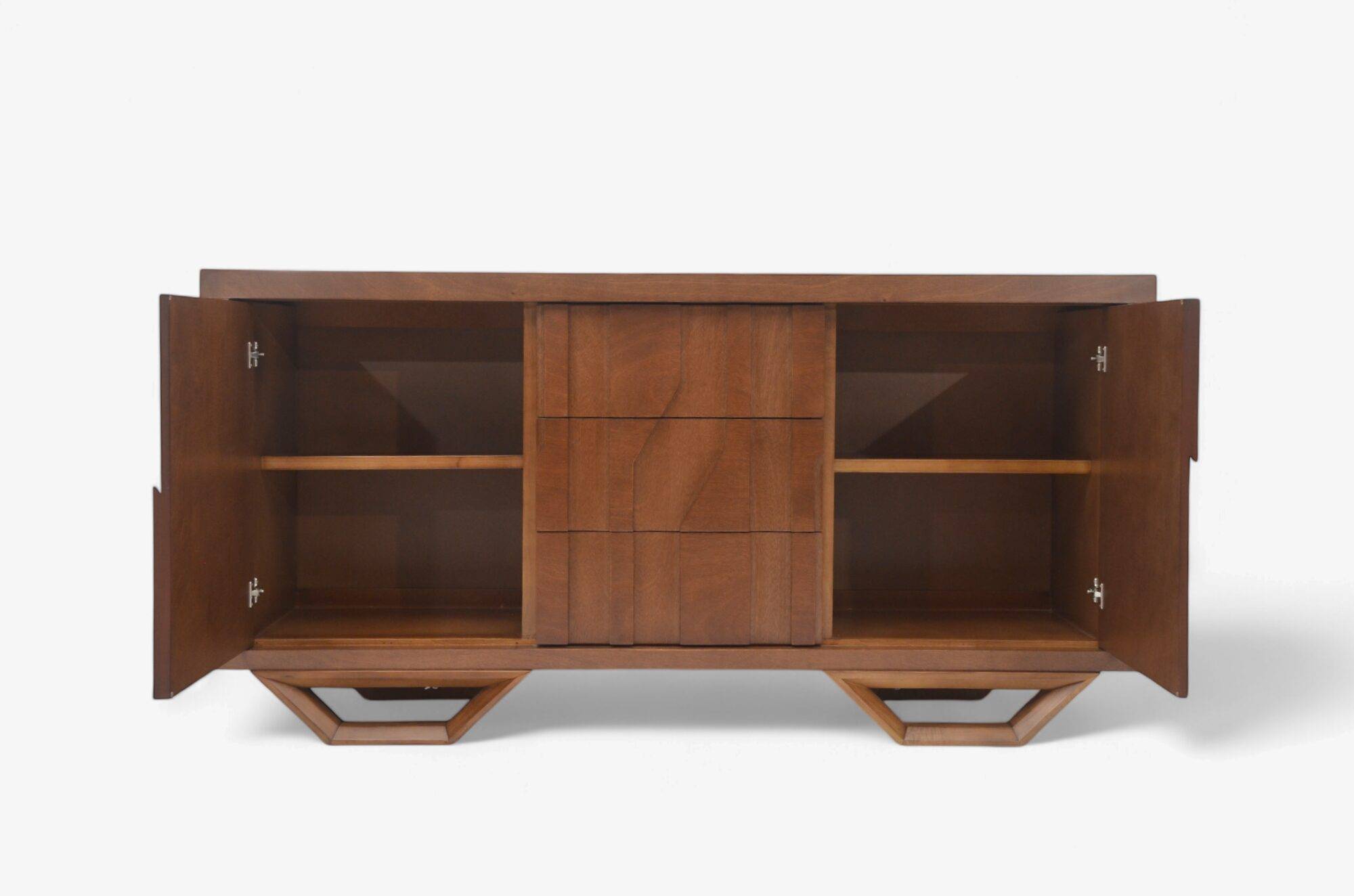 • tres cajones centrales + dos puertas laterales con entrepaños.