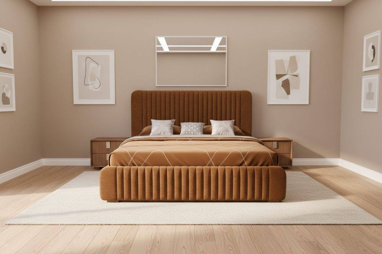 La Cama Iris King Size destaca por su diseño contemporáneo de líneas suaves y proporciones equilibradas, ideal para recámaras amplias que buscan elegancia y calidez. Su cabecera y base con paneles verticales acolchados aportan profundidad visual y un estilo ordenado que transmite confort y sofisticación.