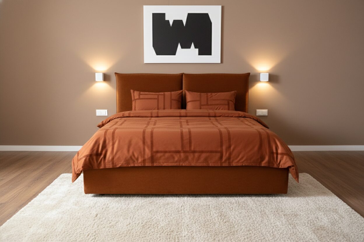 Estilo y Ambiente: La Cama Lania es ideal para ambientes contemporáneos que buscan calidez. Su color Amber Terra armoniza perfectamente con maderas naturales, detalles en negro y una iluminación cálida, convirtiendo tu habitación en un espacio orgánico y sofisticado.