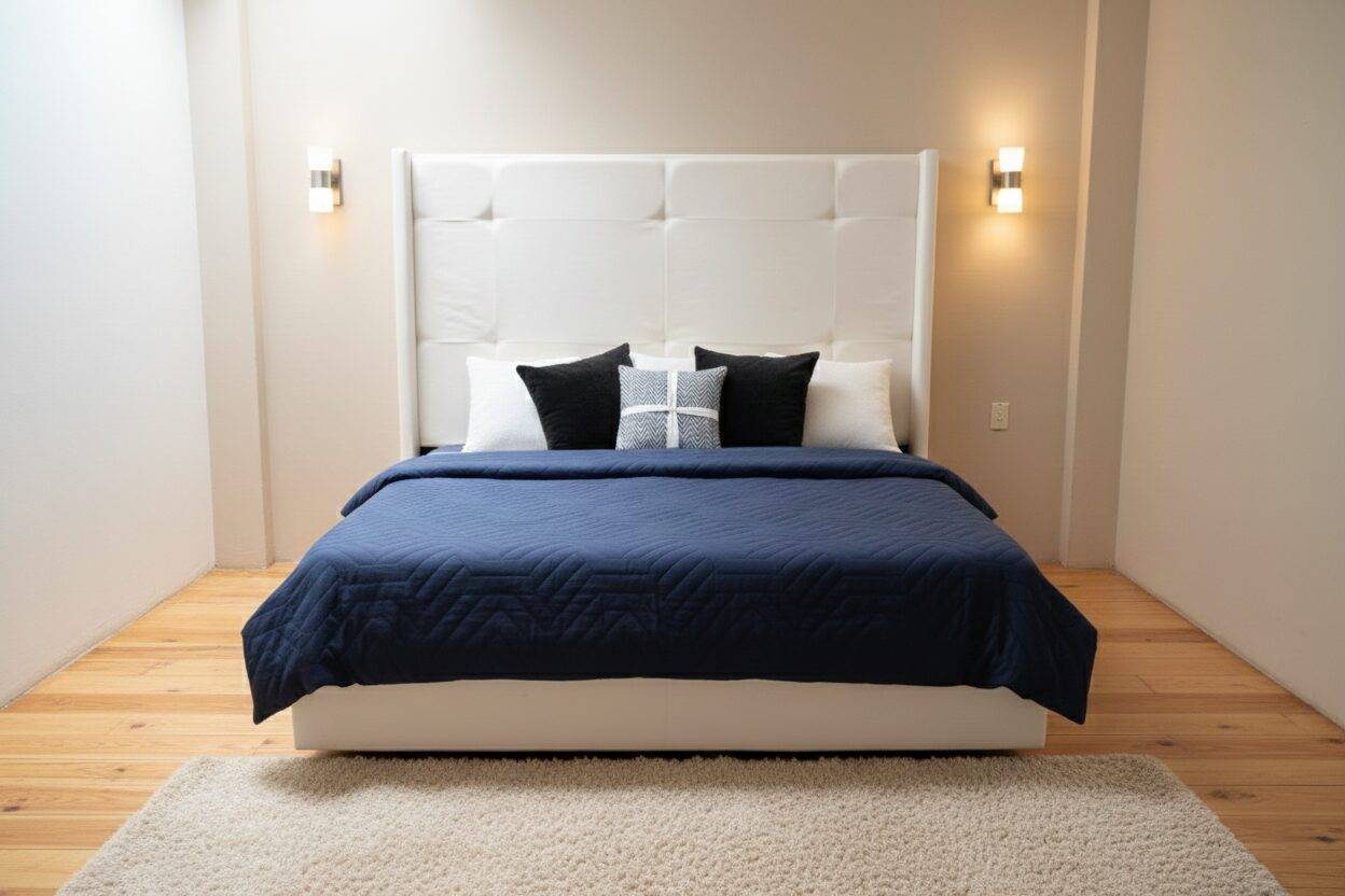 - Cabecera de Gran Altura: Su diseño extendido verticalmente con sutiles orejetas laterales (estilo wingback) crea un marco arquitectónico que llena el espacio con distinción.
