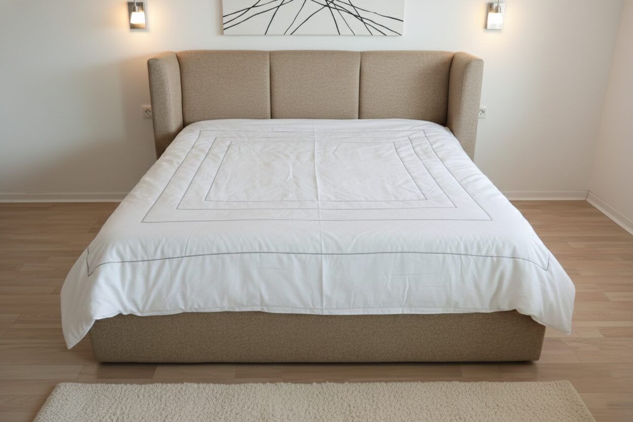 La Cama Terra es la máxima expresión de confort arquitectónico para el dormitorio principal. Su diseño se distingue por una cabecera envolvente de tres paneles que crea un efecto de “nicho”, brindando una sensación única de privacidad, calidez y protección durante el descanso.