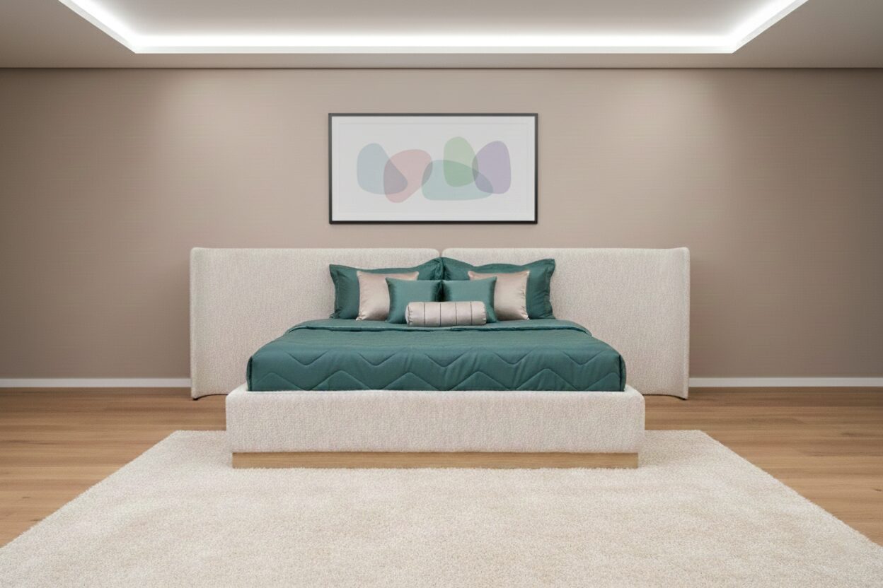 La Cama Vida es una pieza de diseño monumental que redefine los límites del lujo en el dormitorio principal. Su característica más impresionante es una cabecera de extensión extra ancha que sobrepasa los límites laterales de la cama, creando un fondo arquitectónico que unifica el espacio y aporta una sensación de opulencia digna de una suite presidencial.