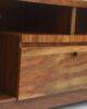 centro de tv modelo Berlin fabricado en corteza de Tzalam con 2 puertas laterales y amplio espacio central para consolas