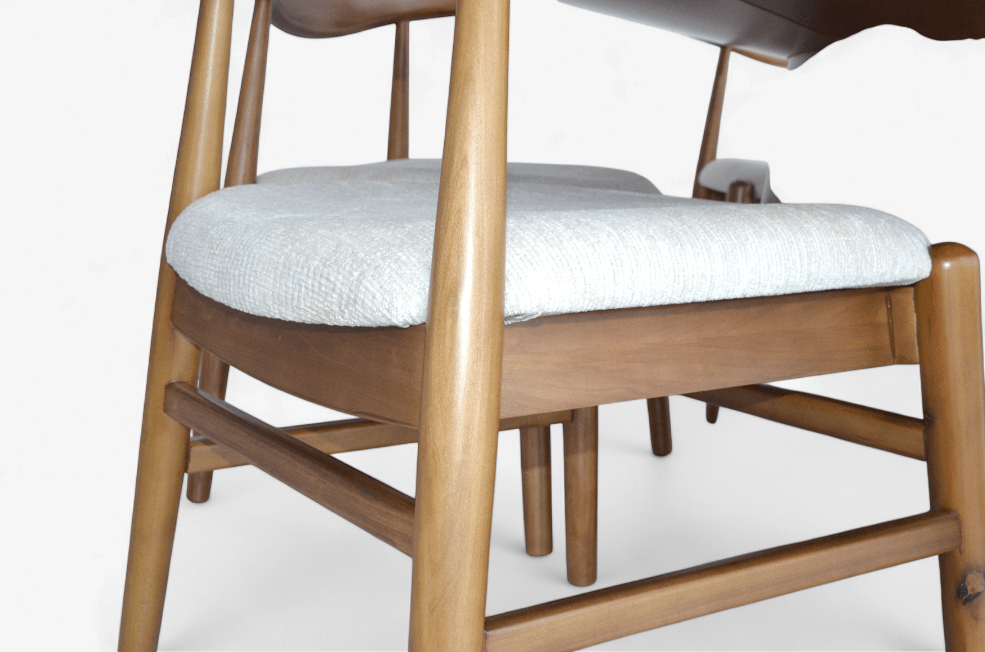 • Incluye 6 sillas de madera Poplar Americano con tela farrel ivory