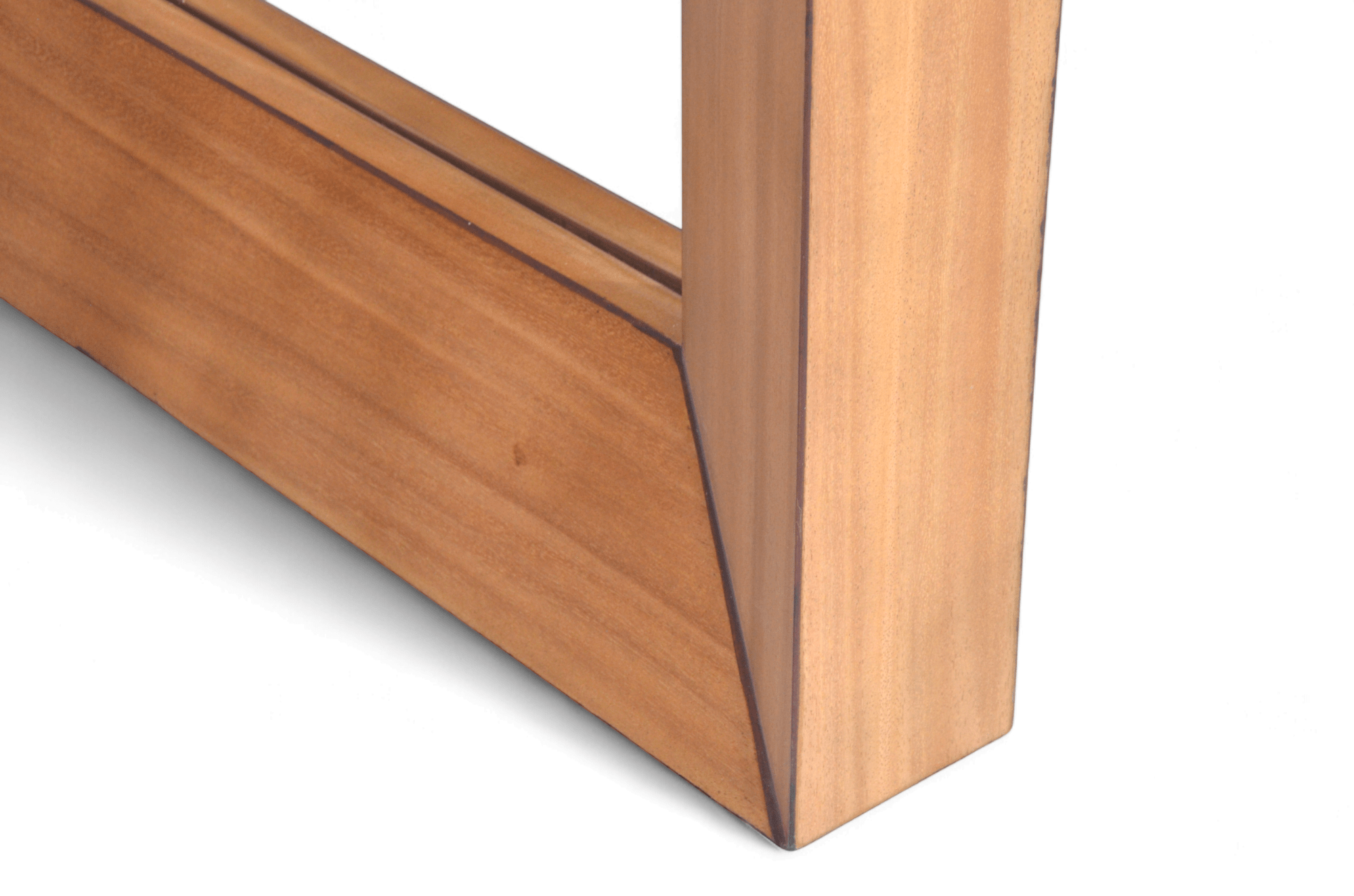 Su marco está elaborado en corteza natural de tzalam, una madera de gran belleza, textura rica y tonalidades cálidas que realzan el diseño y lo integran perfectamente en estilos modernos, rústicos o contemporáneos.