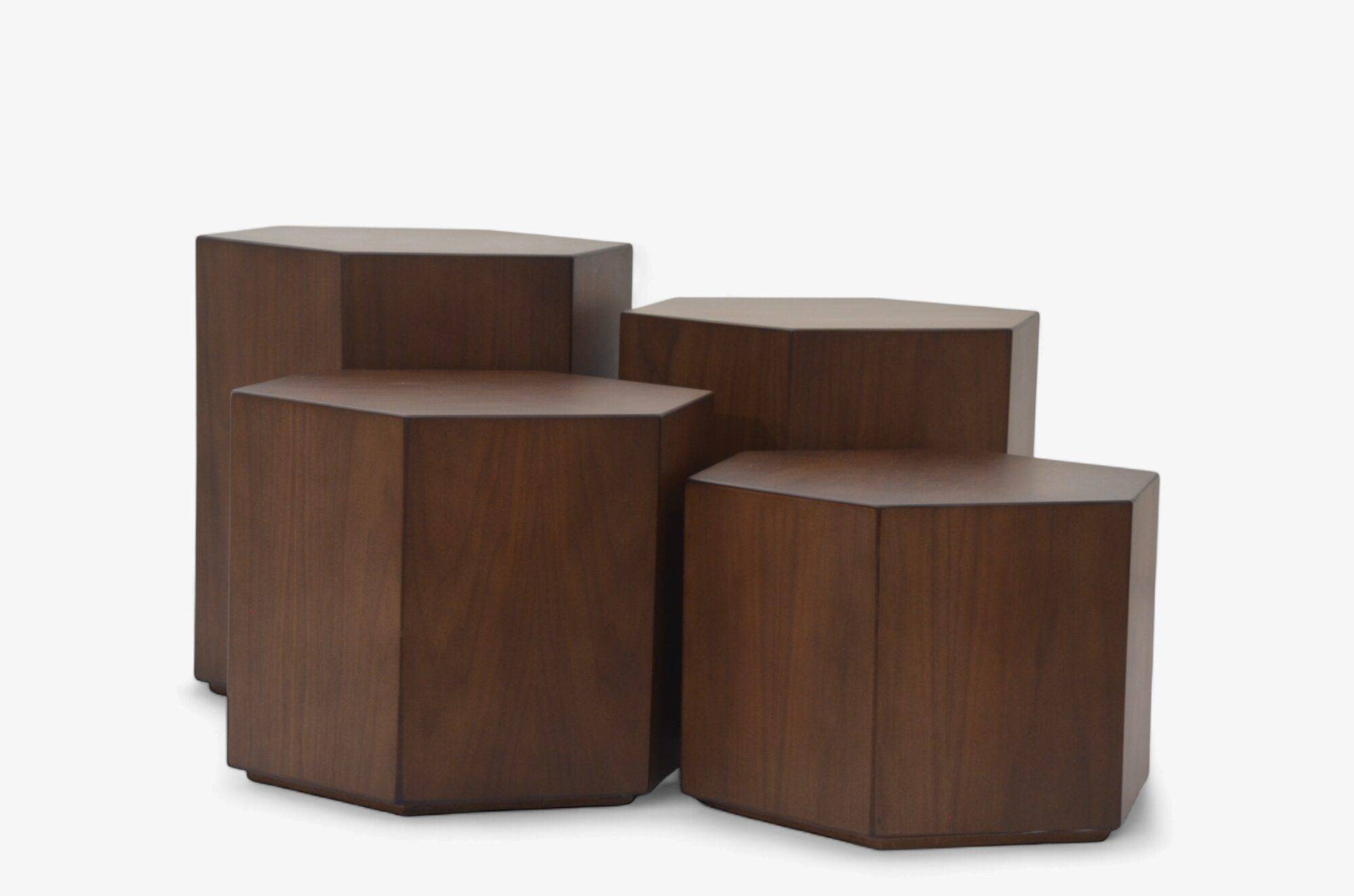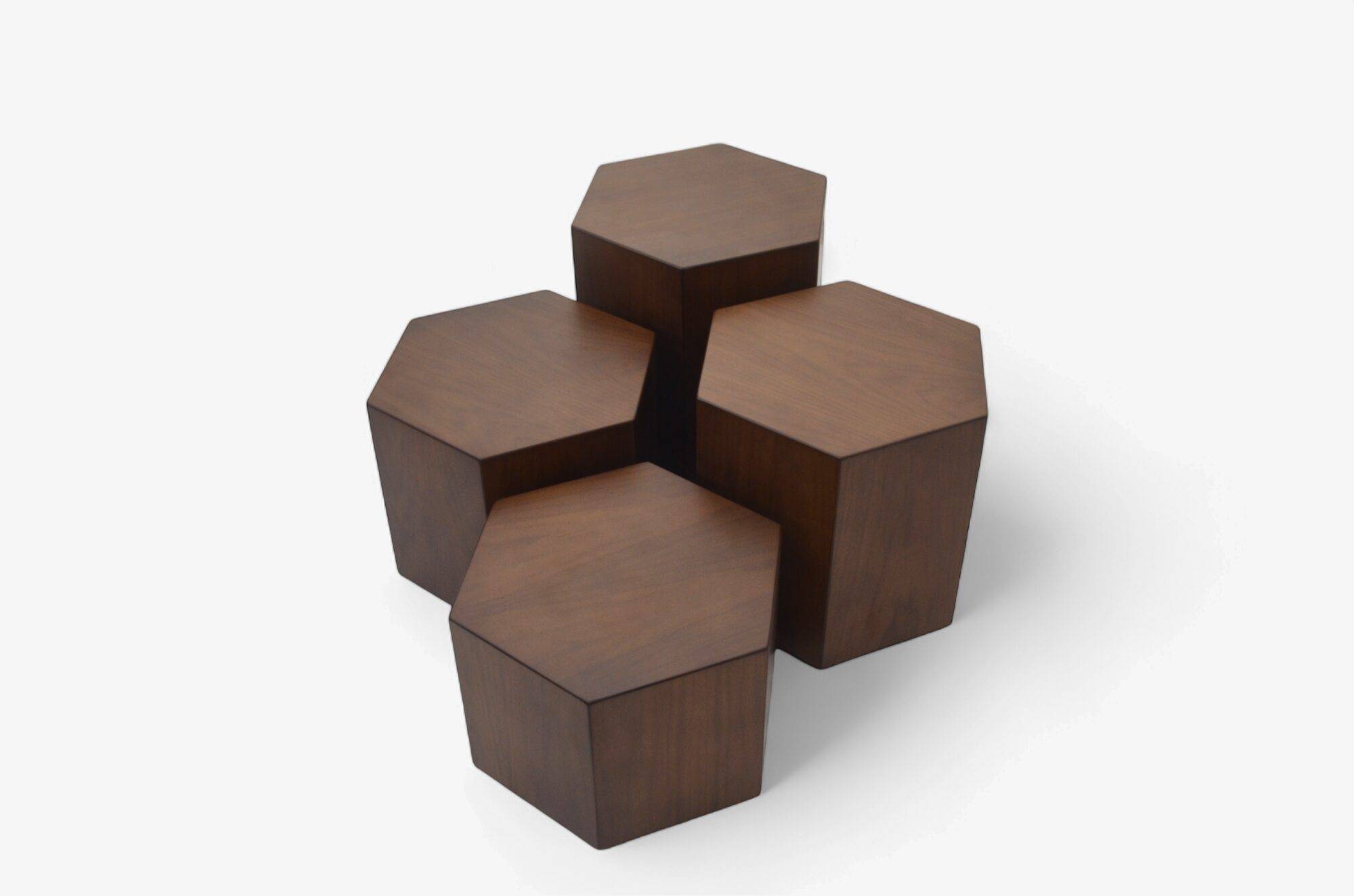 Diseño geométrico con elegancia atemporal. Este elegante juego de mesas de centro está compuesto por 4 piezas en forma hexagonal.