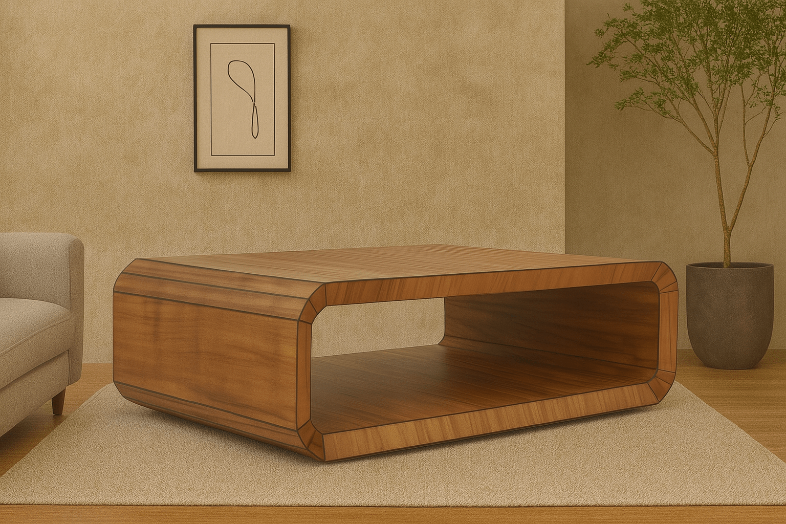 Descubre la elegancia natural y sofisticación contemporánea de nuestra mesa de centro con corte 45º en su contorno, es una pieza elaborada en corteza solida de tzalam.