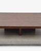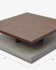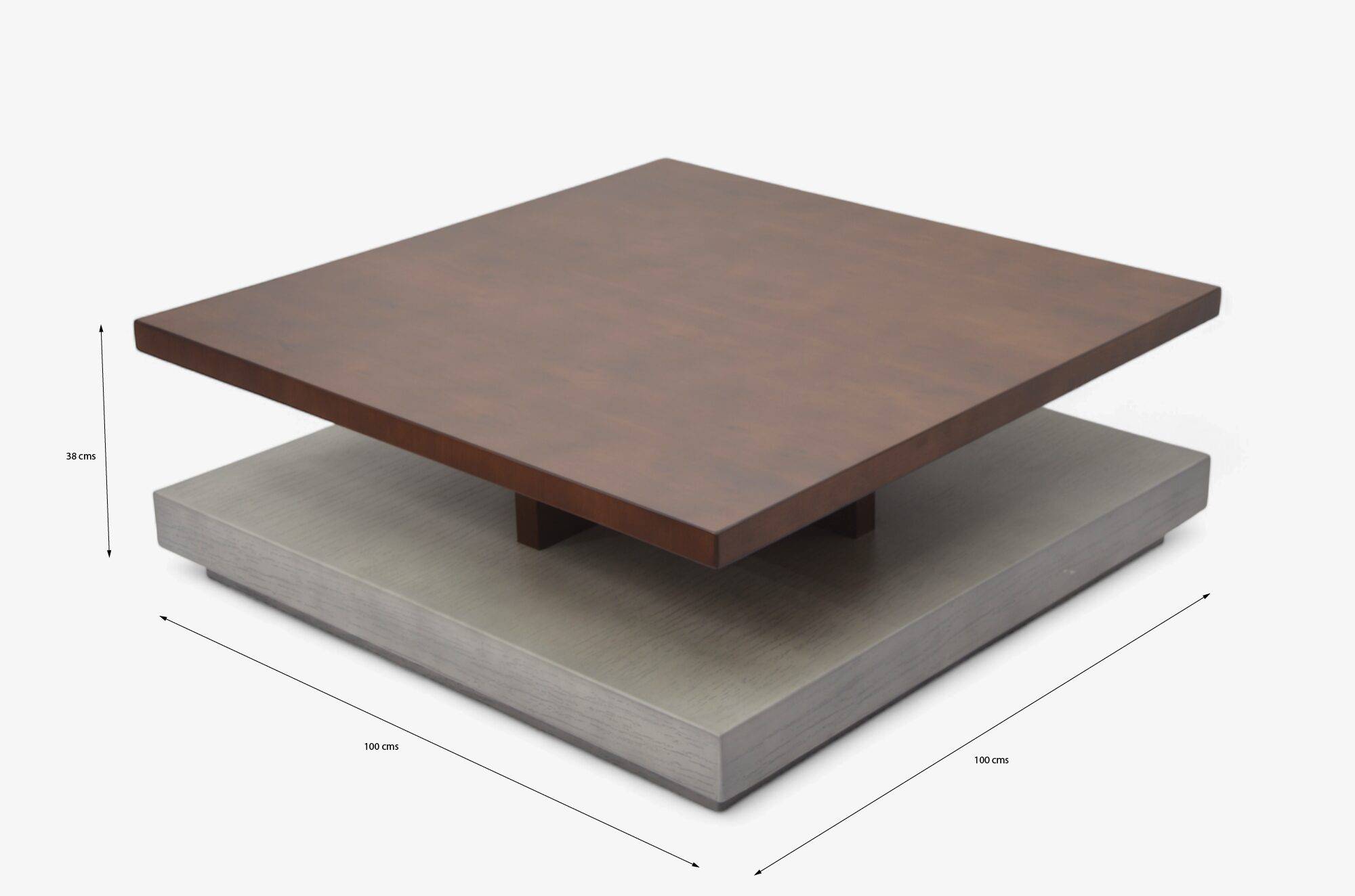 mesa de centro modelo Daira fabricada en corteza de nogal obscuro con detalle de gris oslo en la base