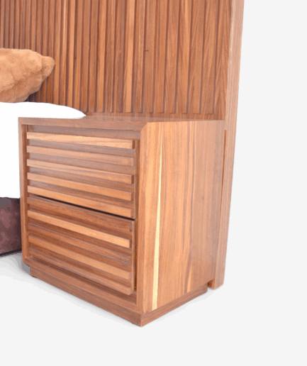 - Sistema de Cama Integral (King Size): Incluye una cabecera monumental con tallados artesanales en la parte superior, acompañada de una piecera y faldones laterales a juego que cierran el diseño de forma majestuosa.