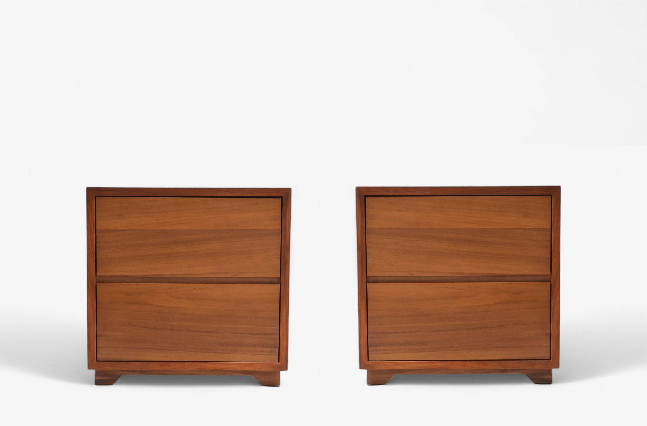 Recámara Majo en madera sólida de parota, con diseño minimalista y acabado artesanal. Incluye cabecera, burós, tocador y espejo. Perfecta para dormitorios modernos y elegantes.