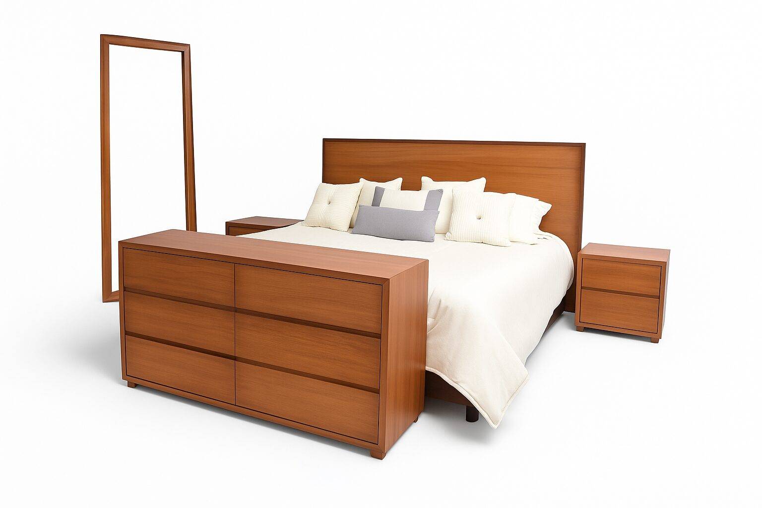 Su estructura robusta y acabado fino hacen de esta recámara una opción ideal para quienes buscan calidad artesanal, diseño atemporal y un mueble que combine funcionalidad y elegancia. Perfecta para dormitorios modernos, cálidos o de estilo escandinavo, creando un ambiente acogedor y sofisticado.