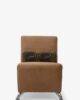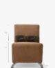 El sillón Karee tapizado en tela velvet camell es ideal para quienes buscan un toque sofisticado sin saturar el espacio.