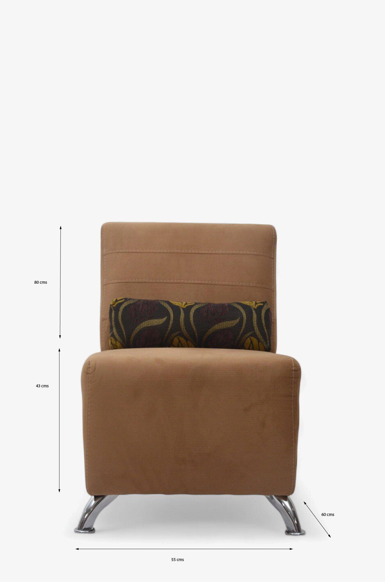 Su estructura se sostiene con patas de acero inoxidable, que aportan firmeza y un estilo contemporáneo. Este modelo individual incluye un cojín decorativo que complementa su diseño, y está pensado para quienes valoran la sencillez y la elegancia: sin coderas, para un perfil más ligero y moderno.