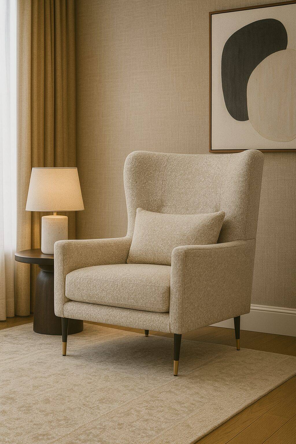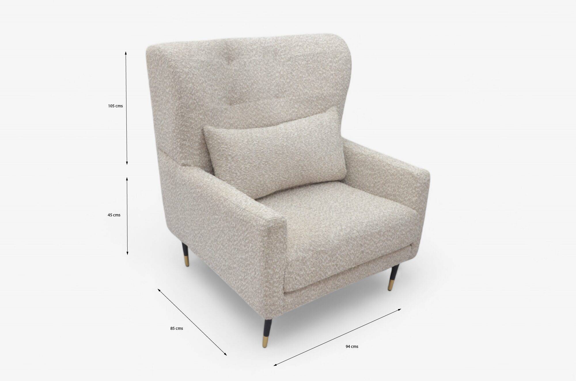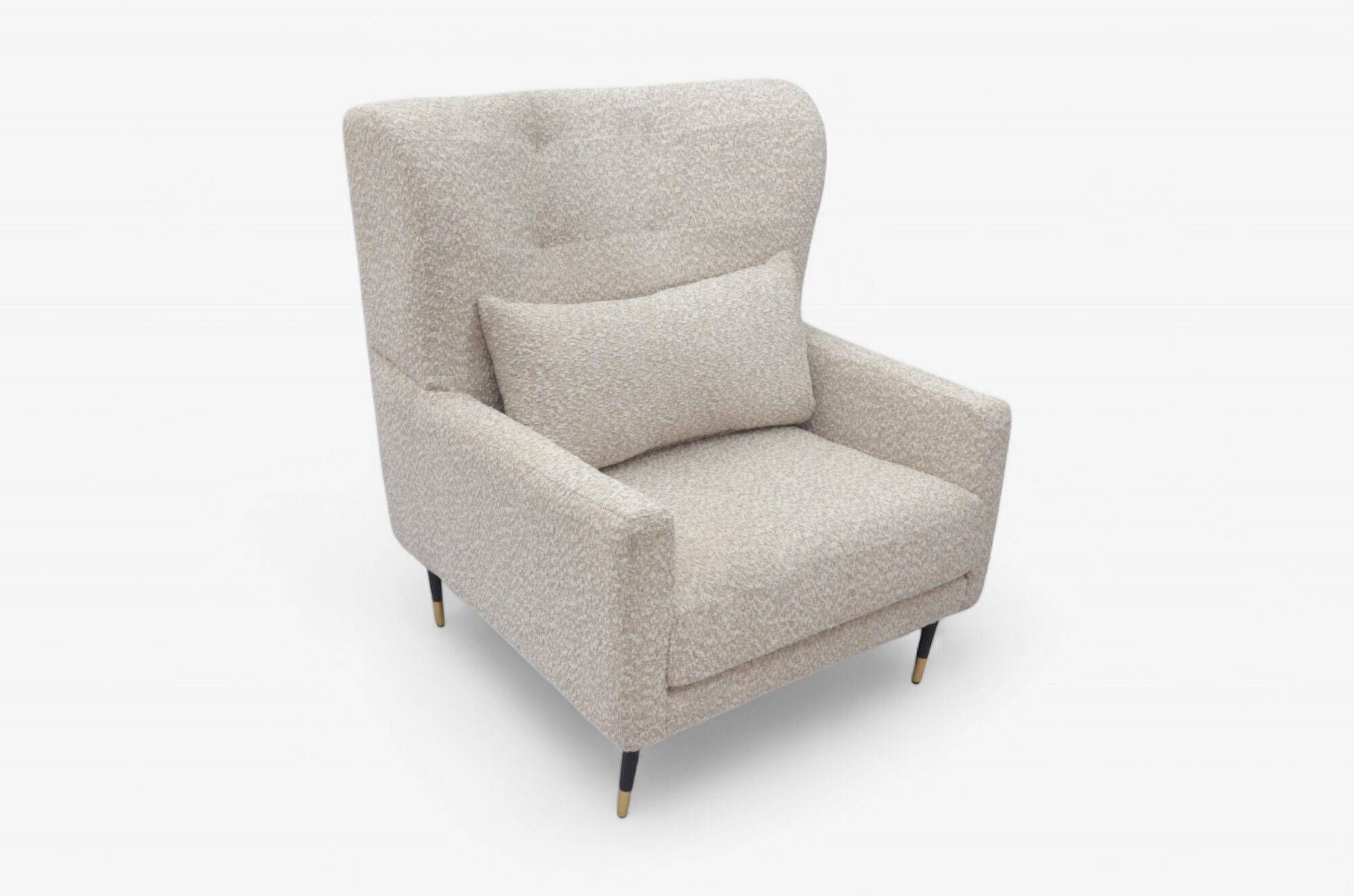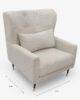 Comodidad envolvente y estilo moderno se fusionan en este sillón individual tapizado en tela texturizada en Avalanche en un tono Ecru, ideal para añadir un toque de elegancia discreta a cualquier espacio. Su respaldo alto tipo ala brinda soporte ergonómico para la espalda, además de una silueta sofisticada que se convierte en un punto focal donde se coloque. Incluye un cojín lumbar que mejora la postura y aumenta el confort. Las patas delgadas, con terminaciones metálicas elevan visualmente el diseño y refuerzan su aire contemporáneo. Perfecto para salas, recamaras, estudios o lobbies que buscan estilo sin perder calidez.
